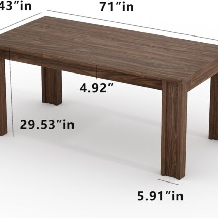 71″ Long Dining Table for 6-8, Rectangular Farmhouse Kitchen Dining Room Table w/Wider H Legs & Large Wooden Tabletop, Sturdy Frame, Wood Strip Base, for Apartment, Kitchen, Dining, Walnut
