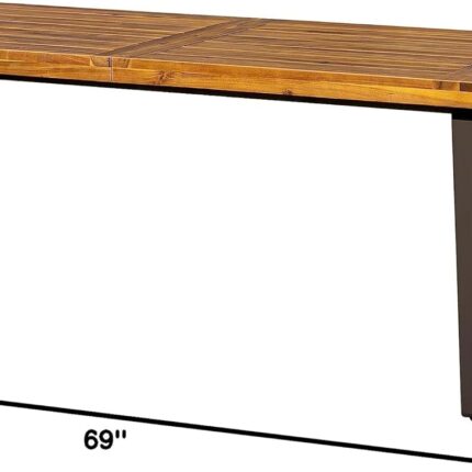 Acacia Wood Dining Table 6-Person Indoor Outdoor Table with Iron Legs, Sandblast Finish, Natural Stained, Rustic Metal, 69 * 33 * 30 inch (Natural)