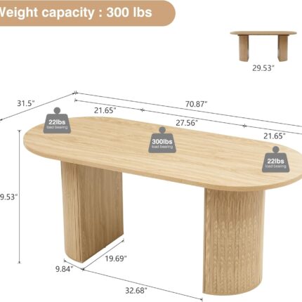 70.8″ Oval Dining Table for 4 6 Person, Modern Farmhouse Kitchen Dinner Table for Breakfast Dining Receiption Room (Only Table), Natural