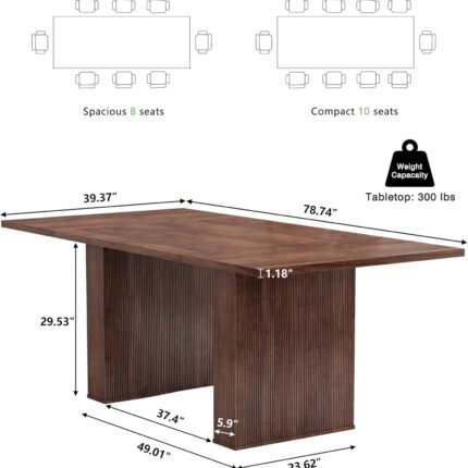 78 Inch Dining Table for 6 8 10, Modern Farmhouse Rectangular Kitchen Table, Long Dining Room Tables with Wood Strip Base for Kitchen Living Room (Walnut)