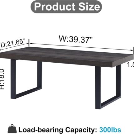 Industrial Grey Coffee Table, Modern Simple Wood and Metal Center Tables, Minimalist Rectangle Wooden Living Room Table, Vintage Rustic Cocktail Tea Table for Home Bedroom, Dark Gray Oak, 39 inch