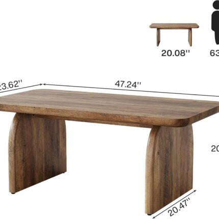 Rectangle Coffee Table, 47-Inch Wood Rectangular Living Room Table, Farmhouse Accent Center Low Cocktail Tea Table with Sturdy Base & Rounded Corners, Easy Assembly (Rustic Brown)