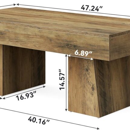Farmhouse Coffee Table, 47 Inches Wooden Rectangular Accent Center Tables with Thick Base, Modern Low Cocktail Tea Furniture for Living Room (Rustic Brown)