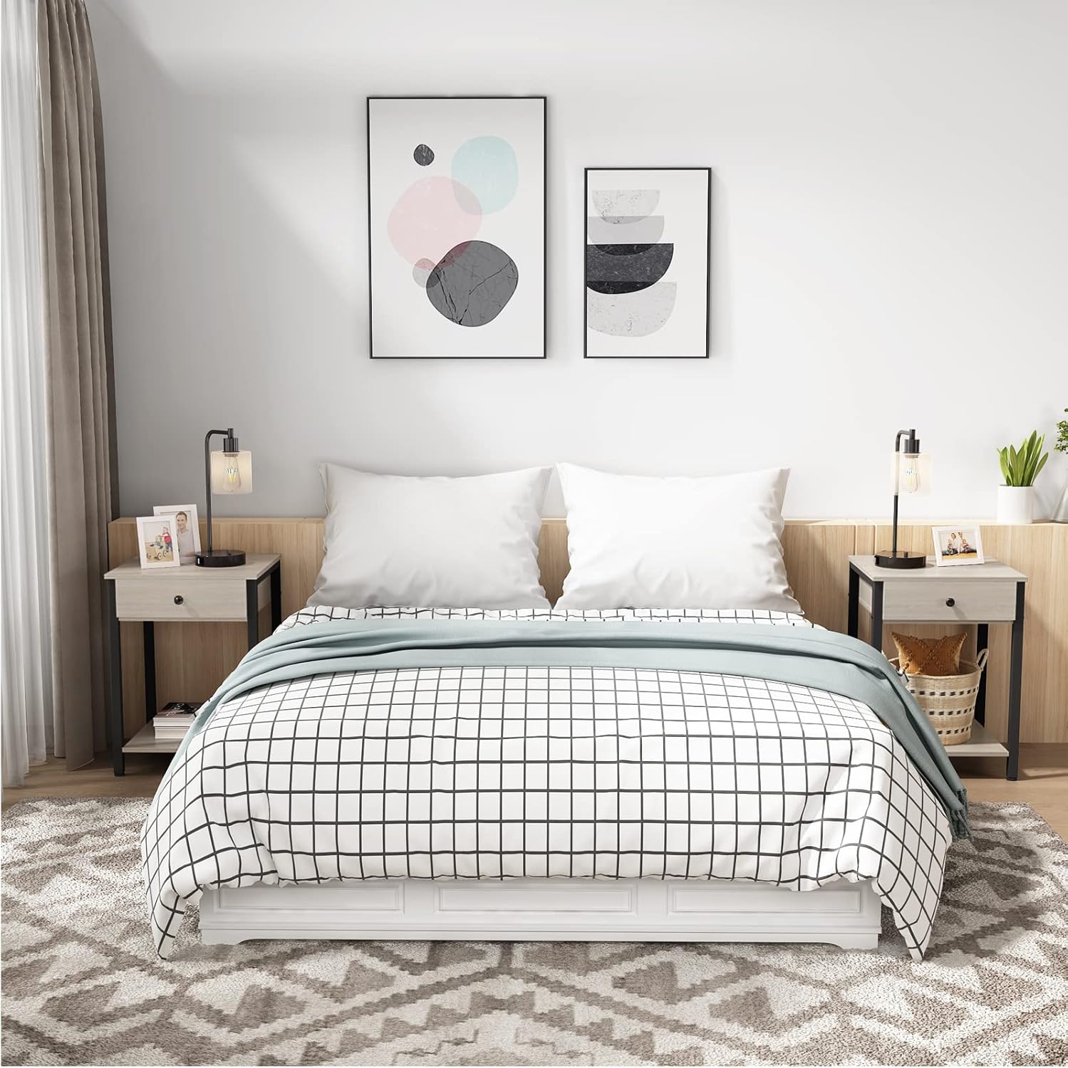 Nightstand Set of 2 Modern End Table Side Table with Drawer and Storage Shelf Wood Night Stand Greige Bedside Table for Bedroom, Living Room, Sofa Couch, Hall, Easy Assembly, Greige