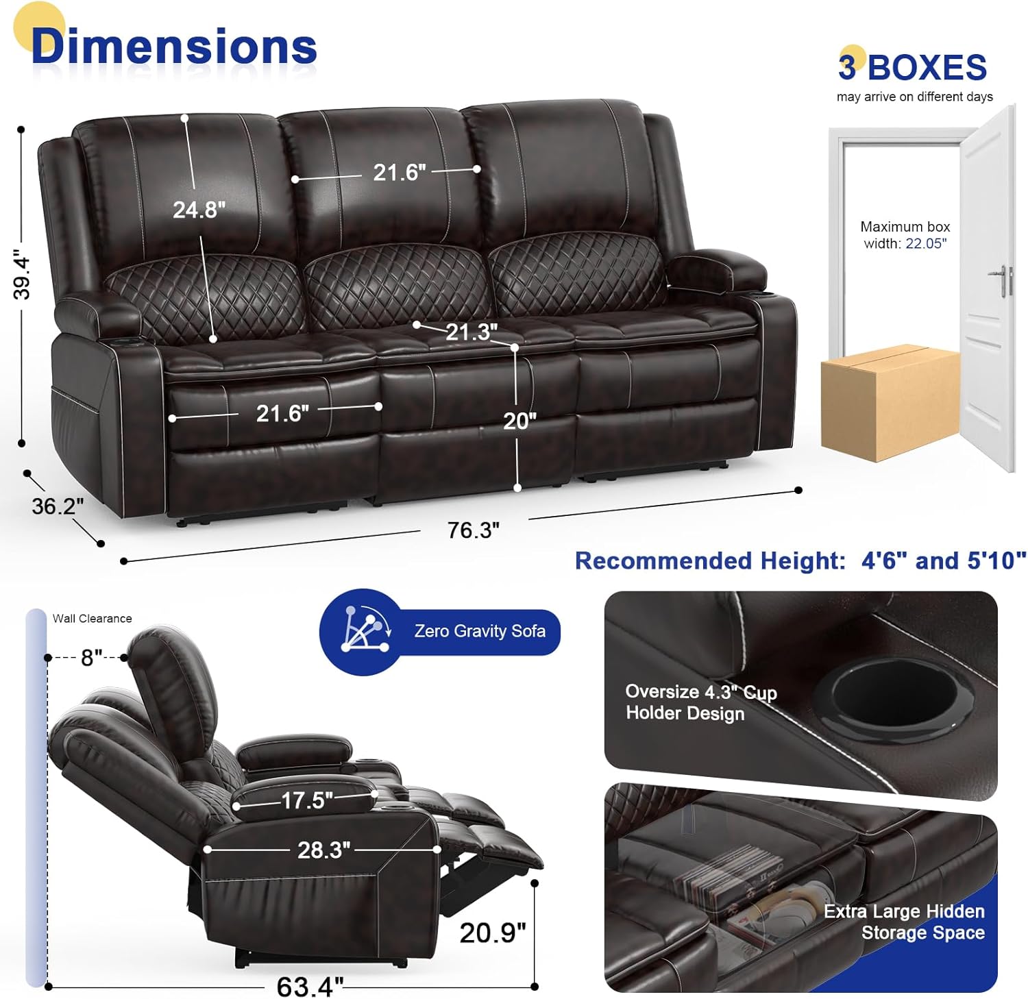- Versatile Middle Seat: Inspired by the practicality of coffee and sofa tables, the middle seat of this recliner sofa is designed to maximize functionality. You can comfortably work on your laptop or enjoy a meal without an extra table. It also features a spacious hidden storage compartment for larger items like wine bottles, with a seat that lifts easily to meet all your needs.