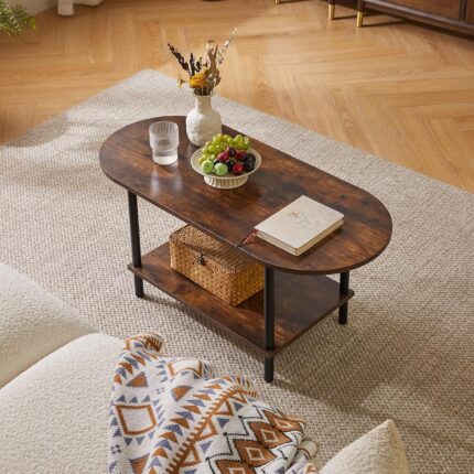 Rustic Coffee Table Small Coffee Table, TV Centre Table Stand 35 * 16 * 17″, 2-Tier Oval Wood Tea Table for Living Room Apartment Rustic Brown
